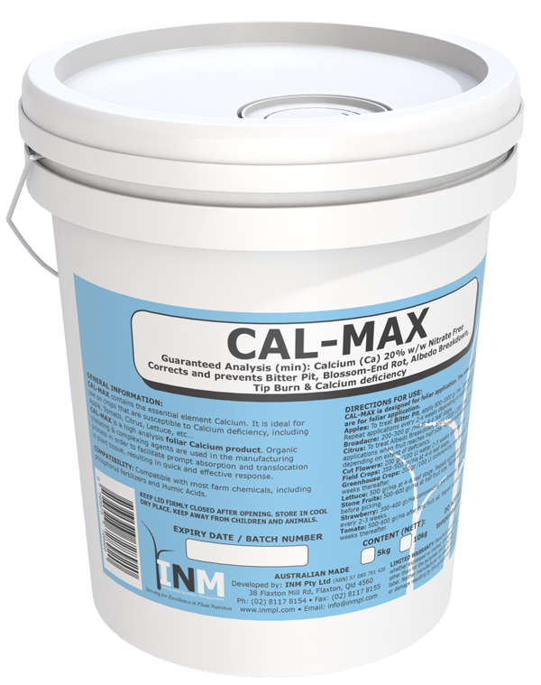For skin and shelf-life improvement, it is best applied late in the season and up till 7 days from harvest. CAL-MAX is compatible with Phosphorus products (after dilution).